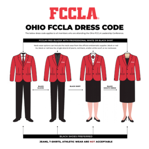 State Leadership Conference (SLC) is the largest event of the year with attendees participating in Career Development Events, leadership training, service learning, networking with fellow members and advisers, and visiting the Ohio FCCLA Expo! FCCLA Red Blazers are the symbol of FCCLA leadership, professionalism, and service to the organization. Ohio has an Official Dress Policy for attending State Leadership Conference and on-stage recognition.